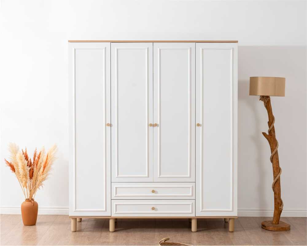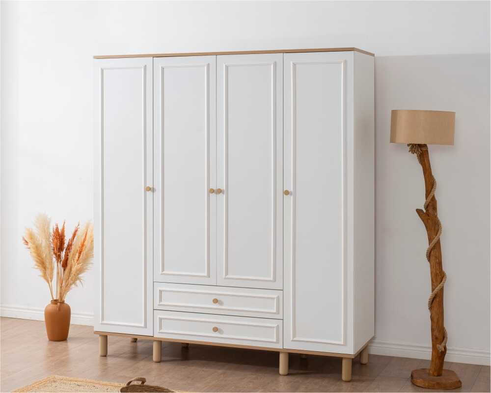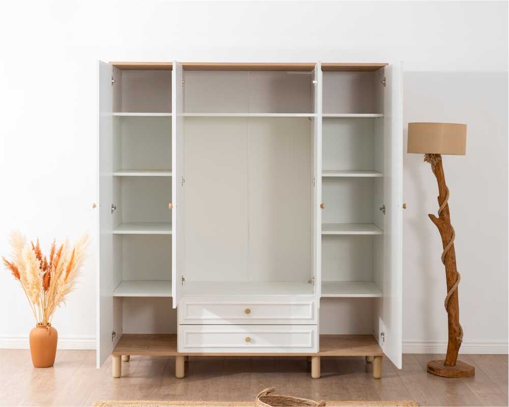 Helly Amber Beyaz Detaylı 4 Kapaklı Gardırop