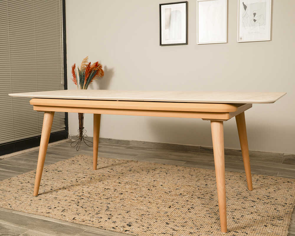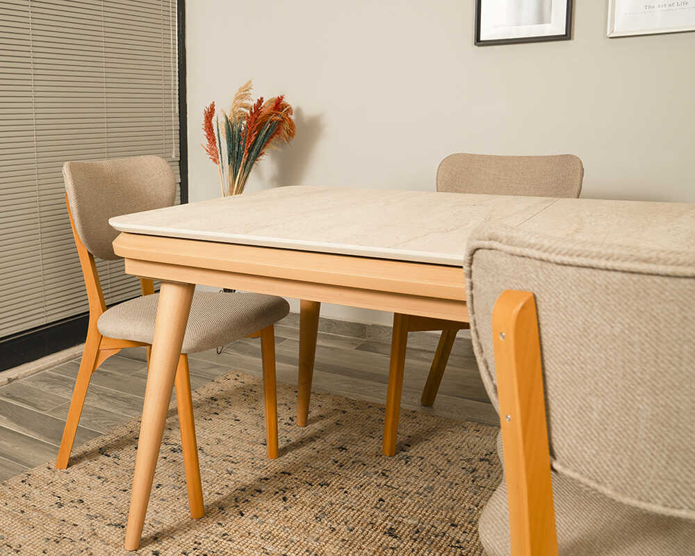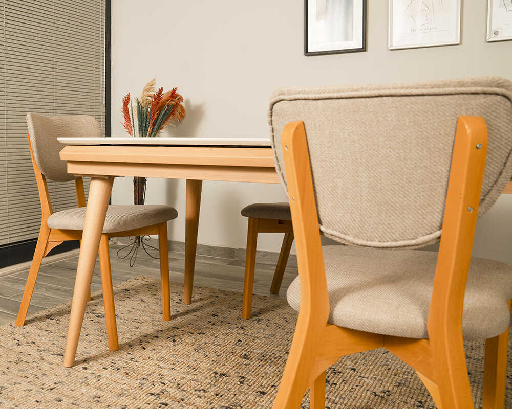 Boo Masa Takımıürün özellikleriMasa Sandalye Takım İçeriği1 masa + 4 sandalyeMasa ve Sandalye ÖlçüleriMasa Ölçüleri:Kapalı ölçüüsüEn: 80 cmBoy: 150 cmAçılır ölçüsüEn : 80 cmBoy : 180 cmYükseklik: 75 cmSandalye Ölçüleri:Genişlik : 48 cmDerinlik : 51 cmYükseklik : 74cmAğırlık : 6.60 Kg (ADET)Masa Takımı Özellikleri:Sandalyeler ve masa ayak iskeletleri %100 el işçiliği Boyanmıştır.Ahşap Malzeme:Yemek masası, sandalye ve benchlerde fırınlanmış gürgen ağacı kullanılmış, bağlantılar B3 tutkallı kavelyalarla sağlanmış ve gürgen ağacı iskelet üzerine kenarları el işçiliği ile boyanmış mdf tablalar yerleştirilmiştir. Oturaklarda ahşap yonga levha üzeri 28 DNS sünger kullanılmıştır.Kumaş Özellikleri425 gr/metretül ağırlığında doğal keten kumaş ile üretilmiştir.Oturma Sistemisandalyelerde 28DNS sünger kullanılmıştır.Bakım/Temizlik ÖnerisiAhşap ve kumaş yüzeyler nemli bir bez ile silinebilir.Demonte ParçalarHasar ihtimalini minimize etmek için için masa ve sandalye parçaları demonte bir şekilde gönderilmektedir.Kurulum müşterimize aittir.