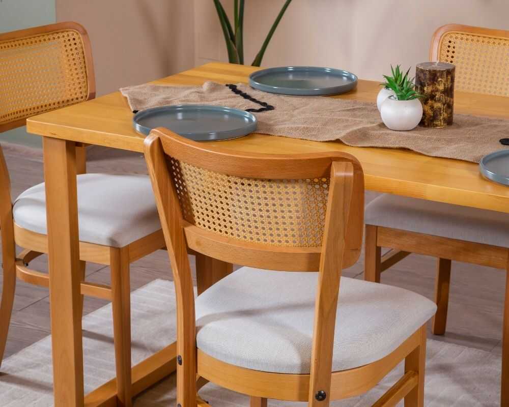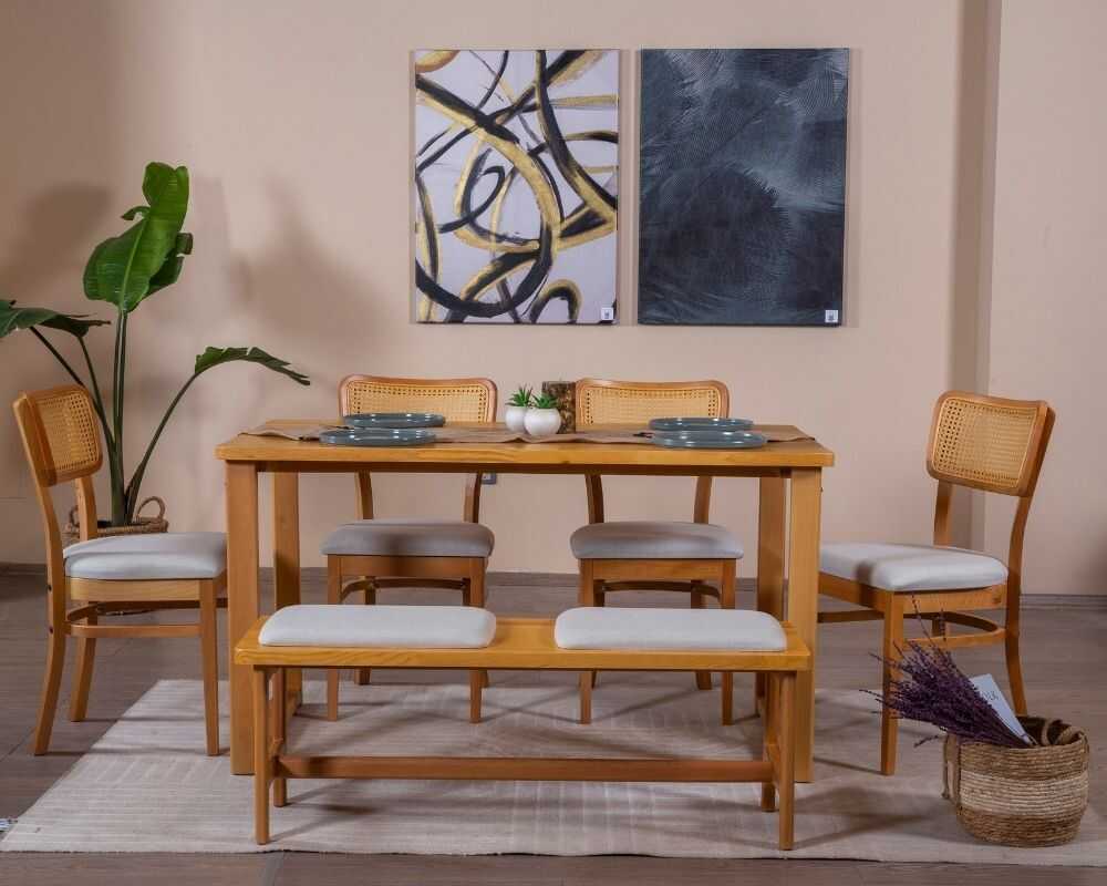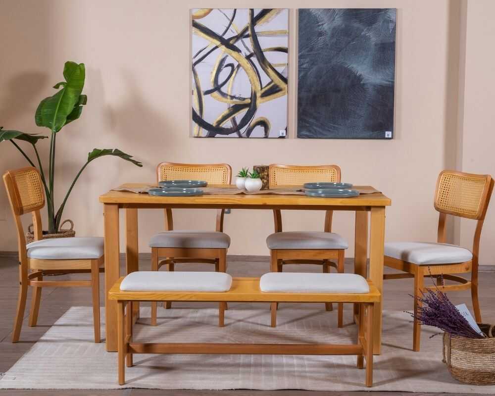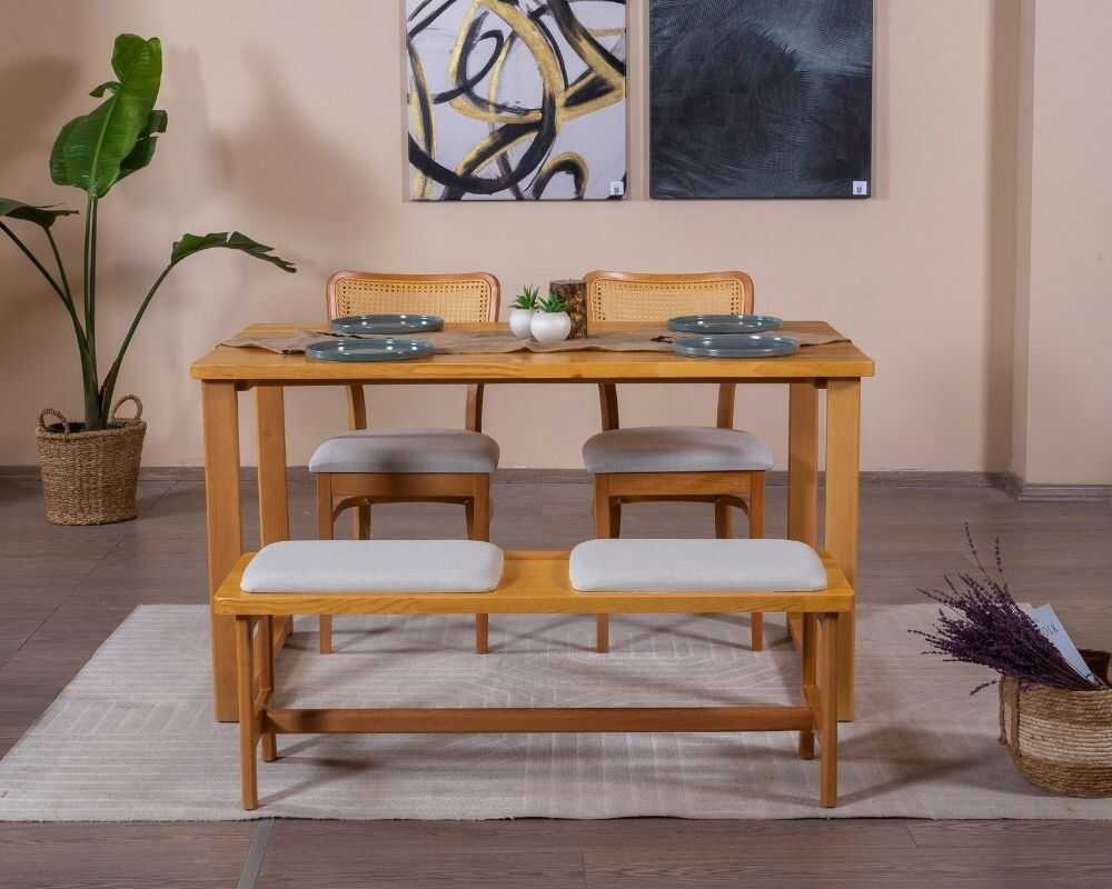Masif Hazeran Masa Takımı 4 Sandalye 1 Bench 1 Masif Masa (80x160)
