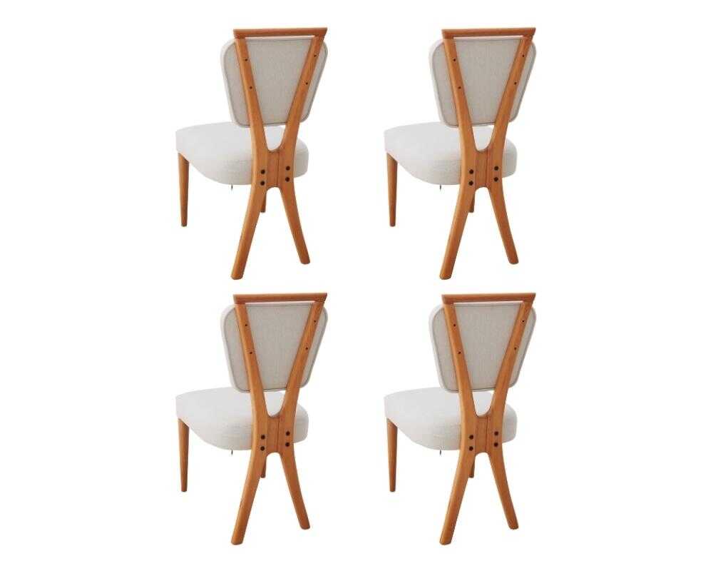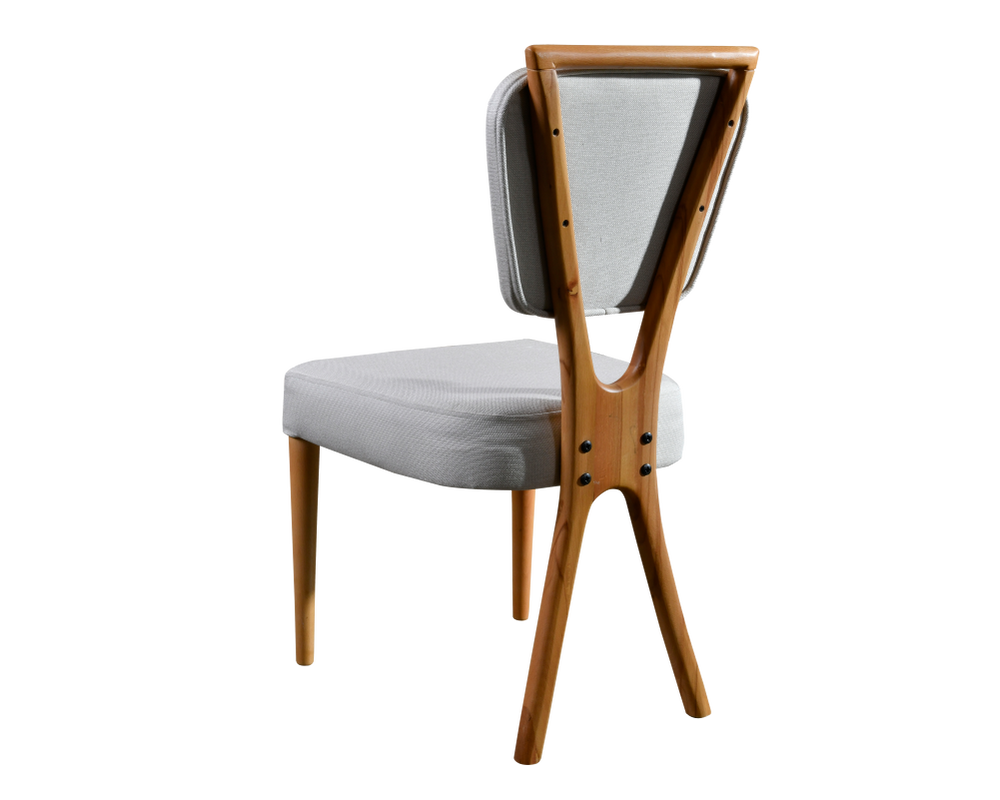 Sırt bölümünde 7 kat %100 gerçek kayın papeli üzerine 15 dns kalınlığındaki sünger kullanılmıştır. Bu sırt desteği, sandalyenin zarafet ve konforunu mükemmel bir şekilde birleştiren bir özellik sunar. Krem keten kumaşla kaplanmış oturaklar, ahşap iskeletle uyum içinde buluşarak yemek sohbetlerinize estetik bir konfor katar.