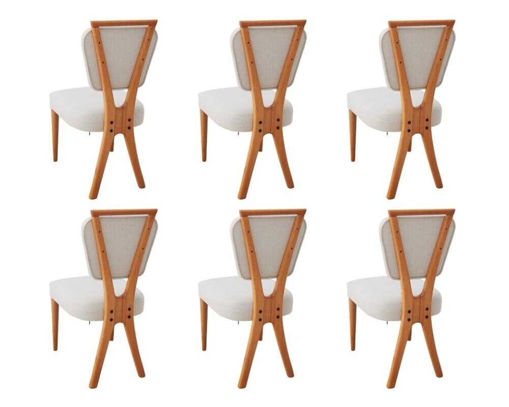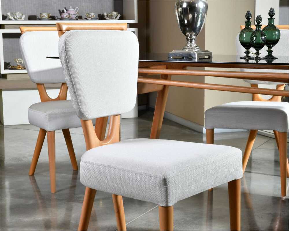 Sırt bölümünde 7 kat %100 gerçek kayın papeli üzerine 15 dns kalınlığındaki sünger kullanılmıştır. Bu sırt desteği, sandalyenin zarafet ve konforunu mükemmel bir şekilde birleştiren bir özellik sunar. Krem keten kumaşla kaplanmış oturaklar, ahşap iskeletle uyum içinde buluşarak yemek sohbetlerinize estetik bir konfor katar.