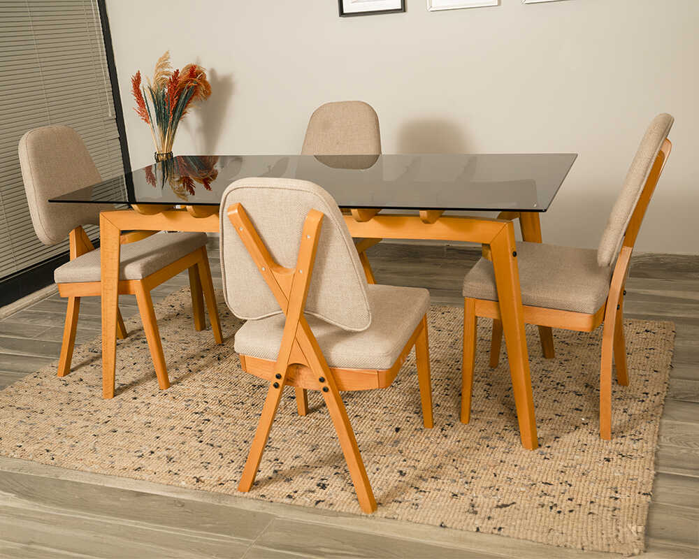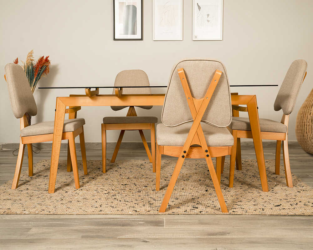 Pera Camlı Masa Takımı 4 Sandalye 1 Masa (160x80)