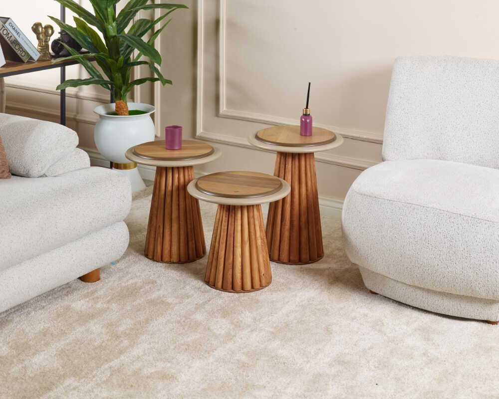 İthra Doğal Ceviz Kaplama 3'lü Zigon Sehpa
