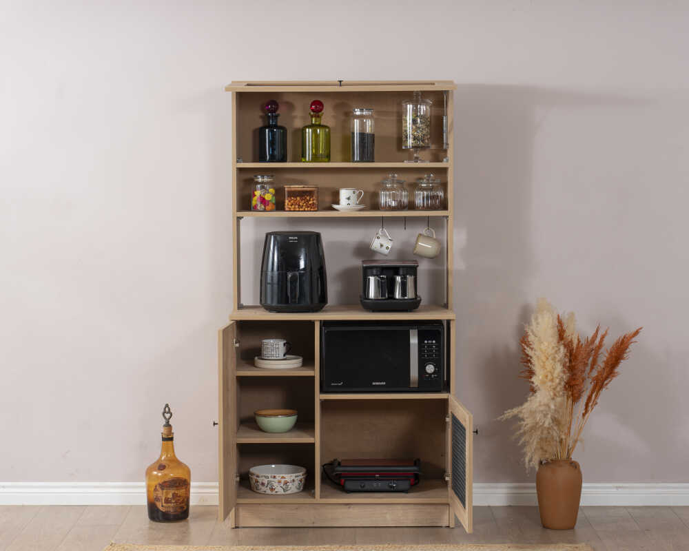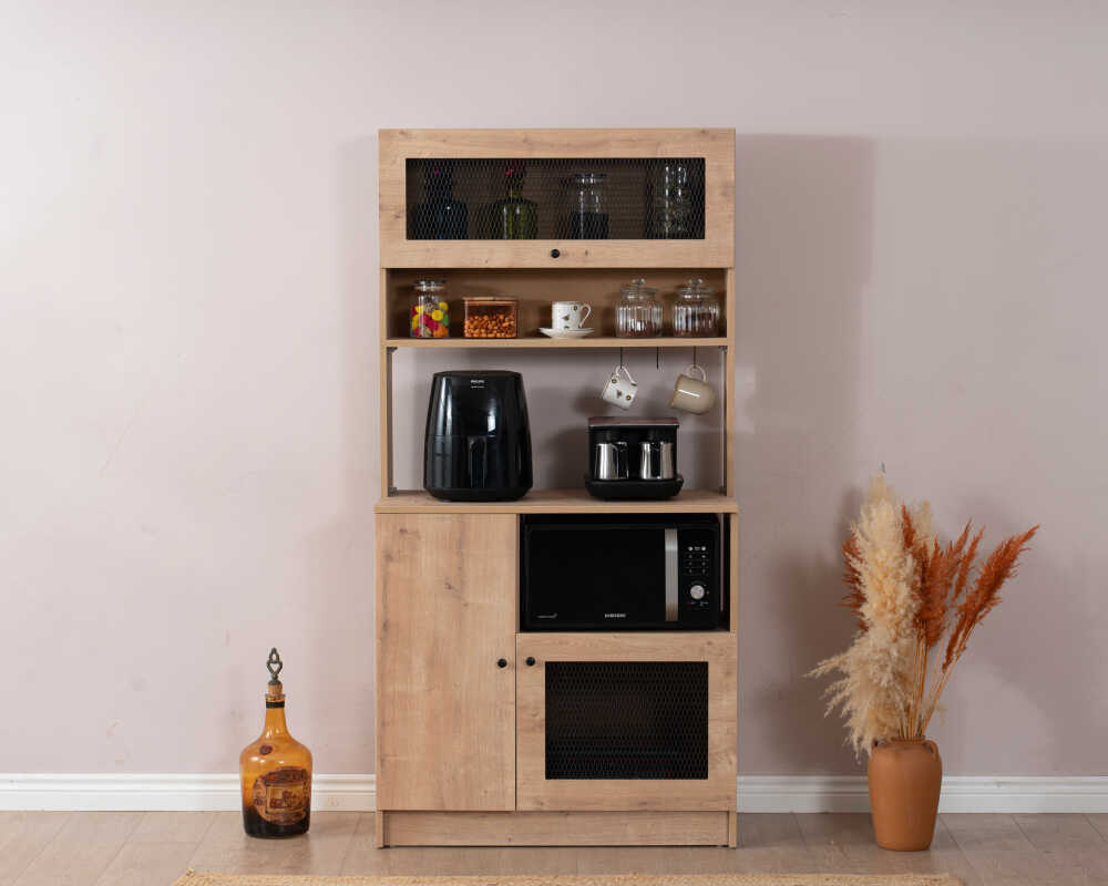 Kahve Dolabı Ana Gövdesi Ürün Özellikleri: Genişlik : 90 cm - Yükseklik : 180 cm - Derinlik : 42 cm 1. Sınıf Hammadde MDF ve Endüstriyel Tel Kullanılmıştır.