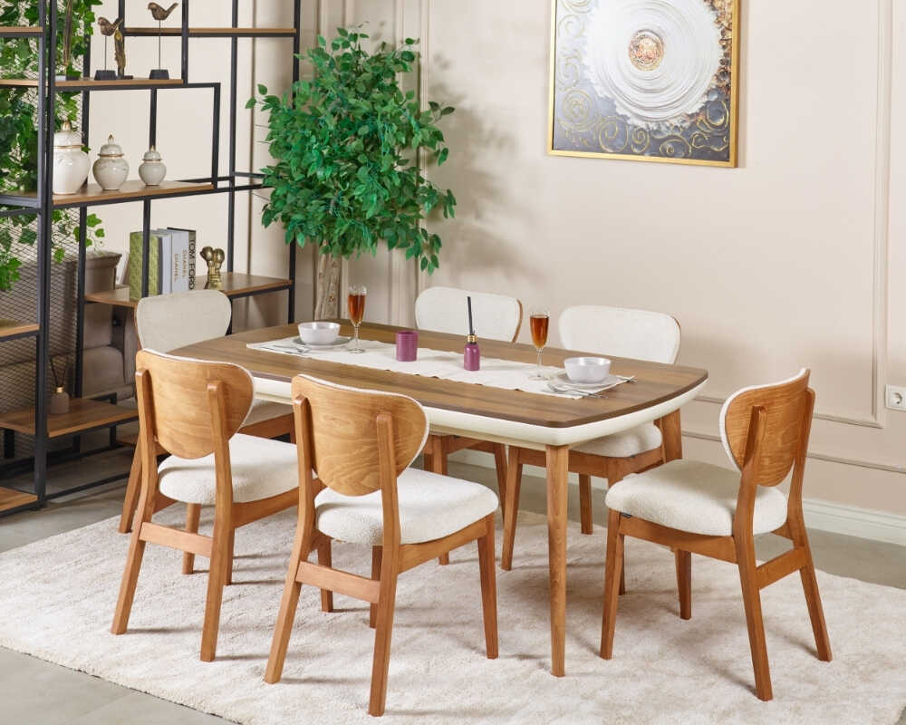 Geniş Oturum Kapasitesi: 6 kişilik oturum kapasitesi ile aile yemeklerinden arkadaş buluşmalarına kadar her türlü etkinlik için ideal. Hem kalabalık hem de samimi toplantılarınız için mükemmel bir tercih.