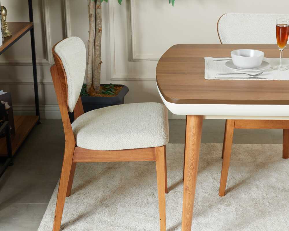 Dayanıklı ve Kaliteli Malzemeler: Masa ayakları sağlam gürgen ağacından, masa yüzeyi ise ceviz kaplama MDF den üretilmiştir. Sandalyelerin ayakları da gürgen ağacından olup, oturum alanı çam malzemesi ile desteklenmiştir. Bu sayede uzun ömürlü ve dayanıklı bir kullanım sunar.