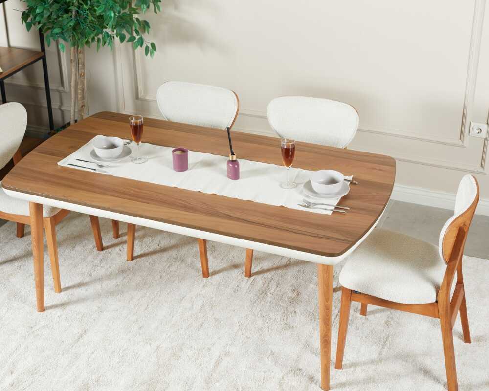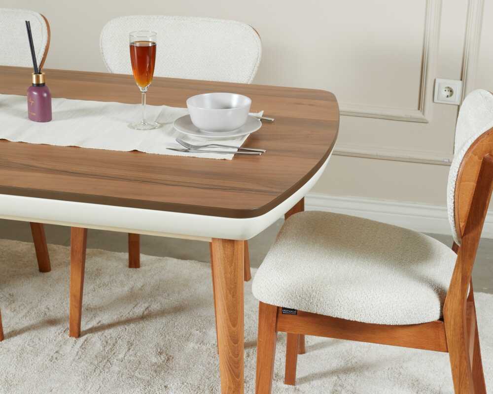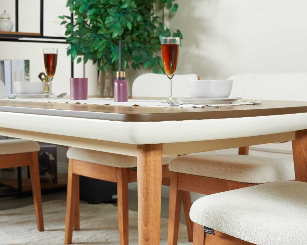 Modern ve Şık Tasarım: Ceviz tonlarının zarif uyumunu yansıtan Vizyon, modern tasarımıyla evinizin her köşesinde şıklığı ve zarafeti beraberinde getirir. Bu masa takımı, misafirlerinizin hayranlıkla bakacağı bir parça olacak.